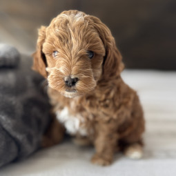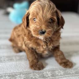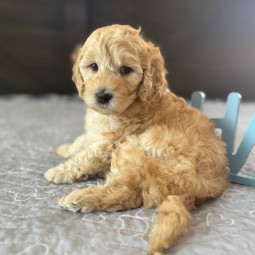 Born on August 18, 2025, Remy is a stylish little gentleman with a name as charming as his personality. We estimate he will weigh between 15–20 lbs full grown. His mommy is Maggie, our beautiful 25 lb F1 Goldendoodle, and ...
