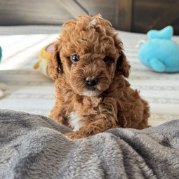 Mira is a darling little lady with a heart as big as her name suggests 🌸. She was born on August 18, 2025, and should weigh about 6–7 lbs full grown. Her mommy, Cinnamon, is our 10 lb F2B Maltipoo, ...