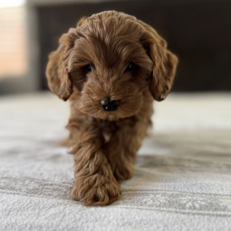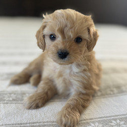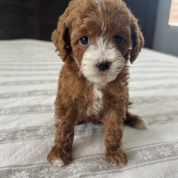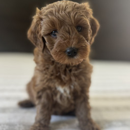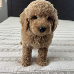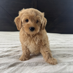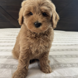 Rusty is an adorable Mini Goldendoodle boy, born on September 26, 2025. He’ll be ready for his new home on November 20, 2025, and is expected to reach 12 lbs full grown. His mom, Mesa, is a 22 lb F1 ...