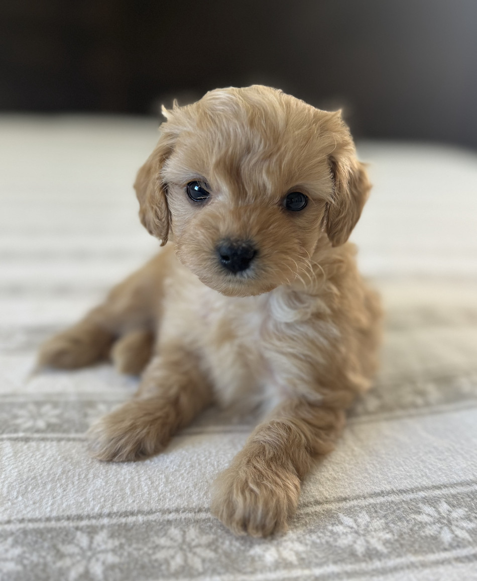 Autumn is a beautiful Mini Goldendoodle girl, born on September 26, 2025, and ready for her forever home on November 20, 2025. She’s expected to weigh about 12 lbs full grown. Her mom, Mesa, is a calm and affectionate 22 lb F1 Mini Goldendoodle from English Cream Retriever lines, and her dad, Winston, is our 3 lb teacup poodle. Autumn is gentle, affectionate, and full of charm—an absolute sweetheart.