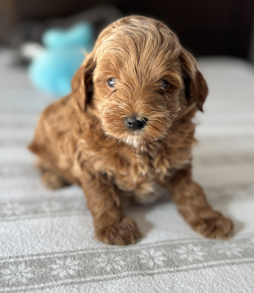 Colt is full of sweetness and cuddles! He was born on August 25, 2025, and will be ready to join his forever home on October 17, 2025. We estimate he will be about 10lbs full grown. His parents are the beautiful Maya (a 16 lb multigen Mini Goldendoodle) and our beloved Winston (a 3 lb 91% teacup poodle). Colt is expected to be a fun-loving and affectionate little pup who will grow into the perfect family companion with a low-shedding coat.