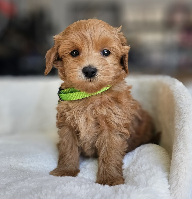 Frodo is a male mini Goldendoodle, born on March 8, 2025, and will be ready for adoption after April 29th. His estimated adult weight is 12 lbs, making him a great companion for any home.