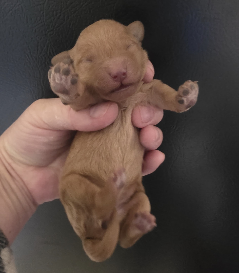 Joy was born on April 4, 2026, and will be ready to go home around May 30, 2026. We estimate her adult weight to be around 15 lbs. As she grows, we will provide a more precise estimate, as some puppies may be smaller and others slightly larger.