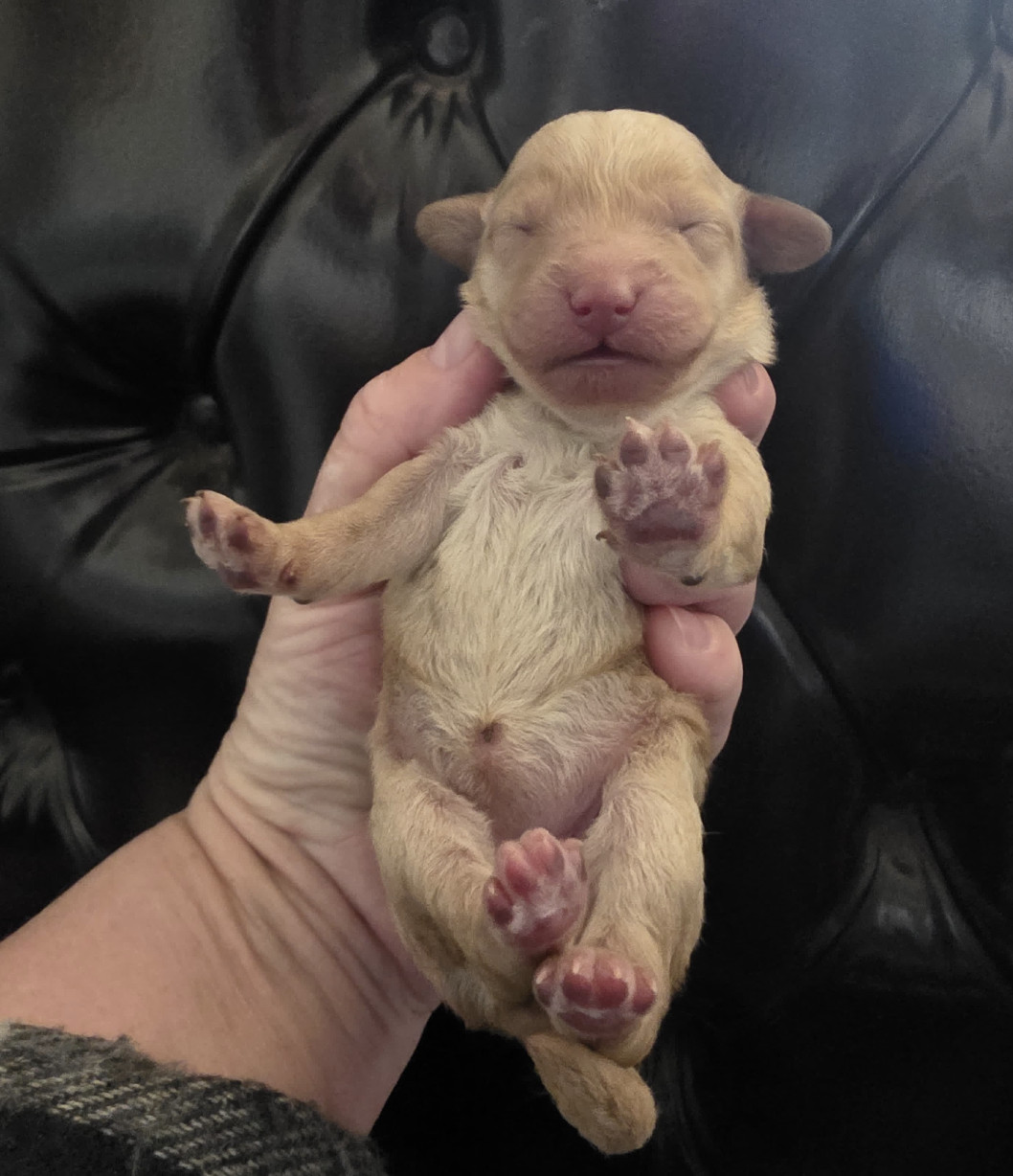 Lumi was born on April 4, 2026, and will be ready to join her forever home around May 30, 2026. We estimate she will be about 15 lbs full grown, though we will have a better estimate as she grows—some puppies may be a little smaller or bigger.