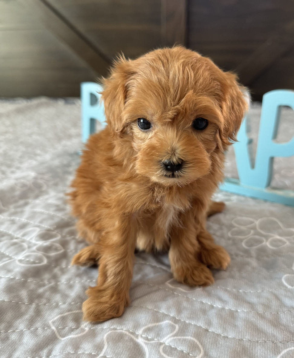 Mira is a darling little lady with a heart as big as her name suggests 🌸. She was born on August 18, 2025, and should weigh about 6–7 lbs full grown. Her mommy, Cinnamon, is our 10 lb F2B Maltipoo, and her daddy is Winston, our 3 lb 91% teacup poodle. Mira will be ready for her forever home starting October 13, 2025.