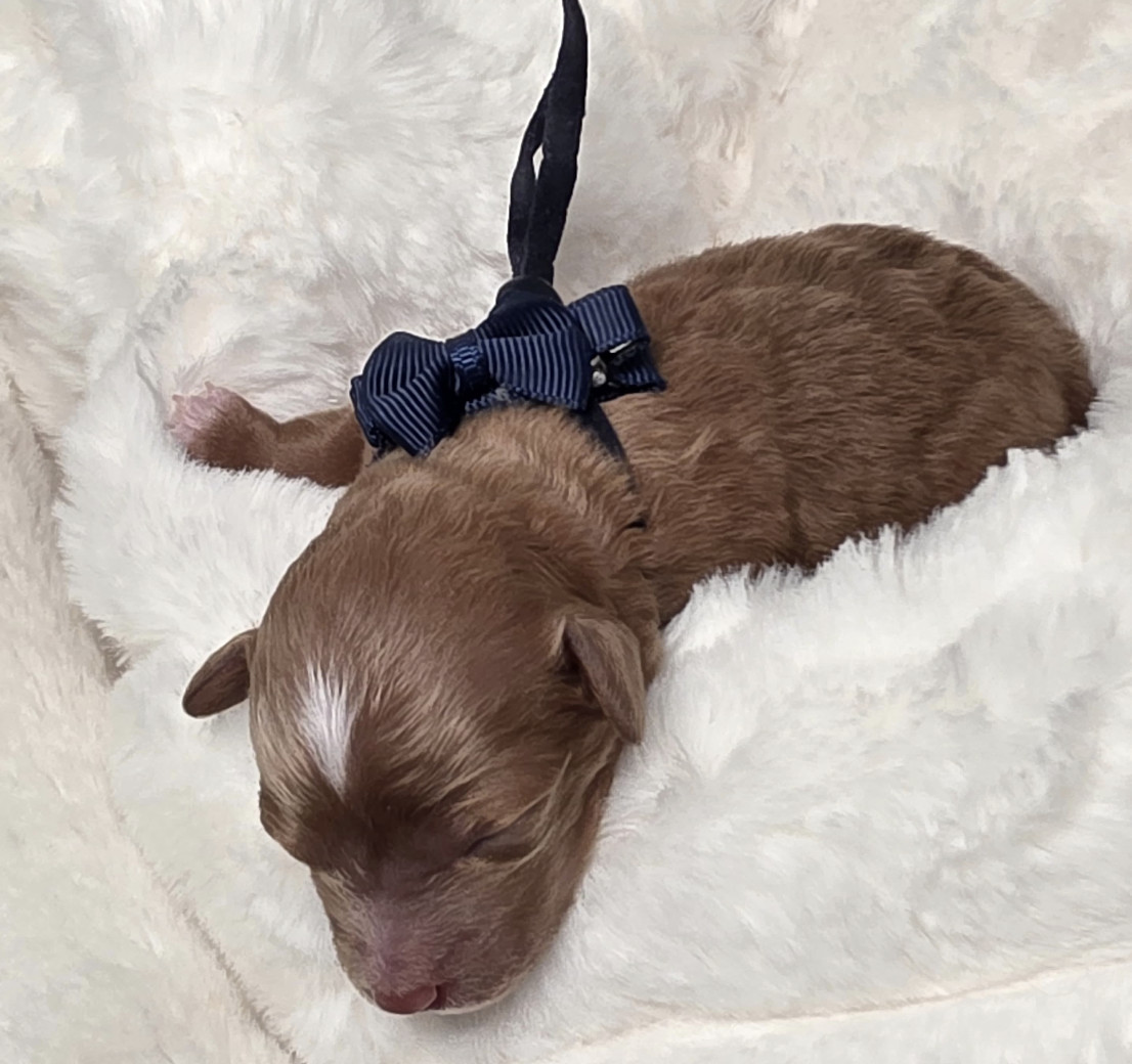 Monty is a handsome male Maltipoo with a playful and affectionate personality. He was born on 04/11/2026 to Evee, our 7 lb Maltipoo, and Winston, our 3 lb (91% teacup) Poodle. His estimated adult weight is around 5 lbs. Monty will be ready to join his new family around 06/06/2026.