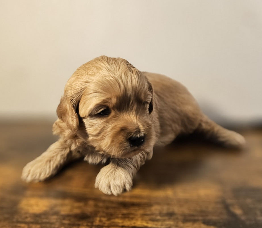 Ollie is the son of Show Low, our 15 lb mini Goldendoodle known for her sweet nature, and a 7 lb AKC-registered poodle who brings intelligence and refinement to the mix. With this lineage, Ollie is sure to be low-shedding, smart, and affectionate.