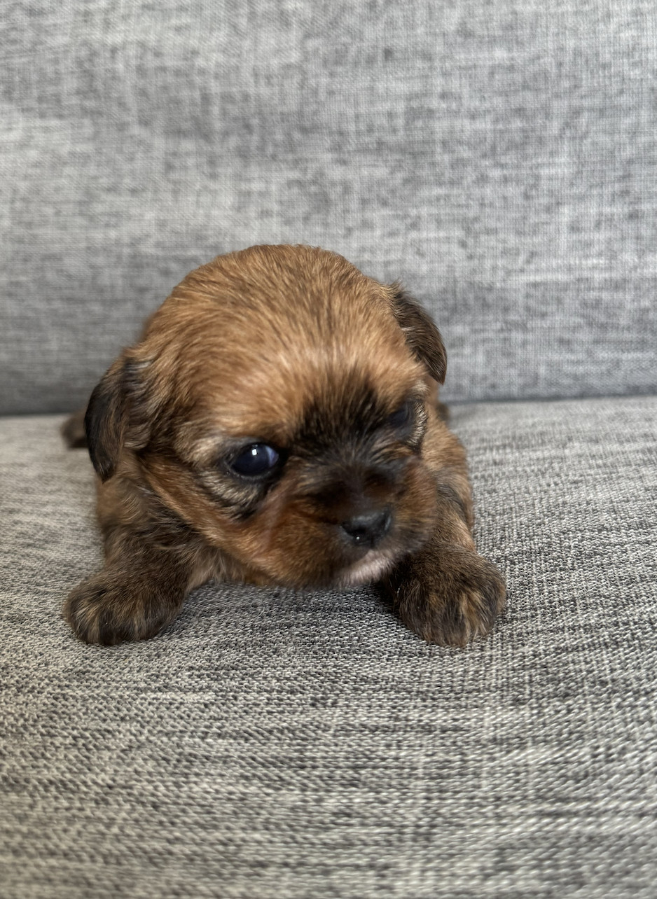 Her mama, Hazelnut, is a gentle and loving Shih Tzu-Poodle mix (8 lbs), and her daddy, Scruffy, is a tiny yet mighty AKC Teacup Yorkie (3.4 lbs).