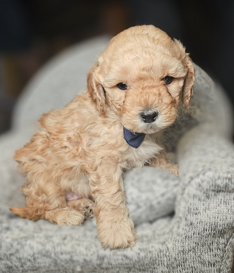 Ryder was born on February, 28 and he will be ready to go home around April 25th. He is the cutest male Maltipoo ever. We estimate he will be about 8-9 lbs full grown.